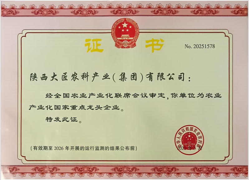 · 09月,集团公司被铜川市农业农村局授予“铜川市优秀联农带农企业”称号。