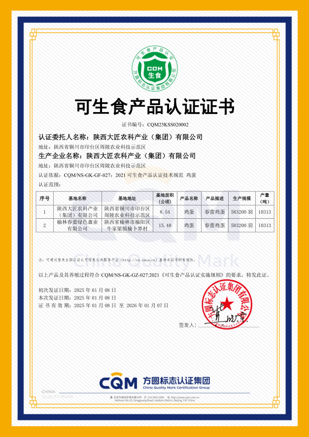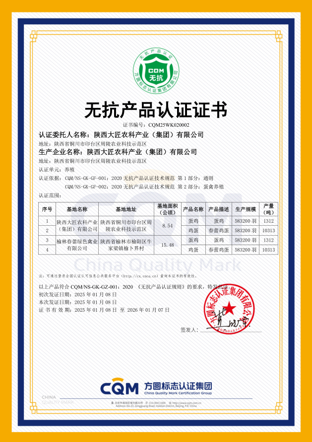· 01月,春蕾鸡蛋通过“可生食产品认证”及“无抗产品认证”。