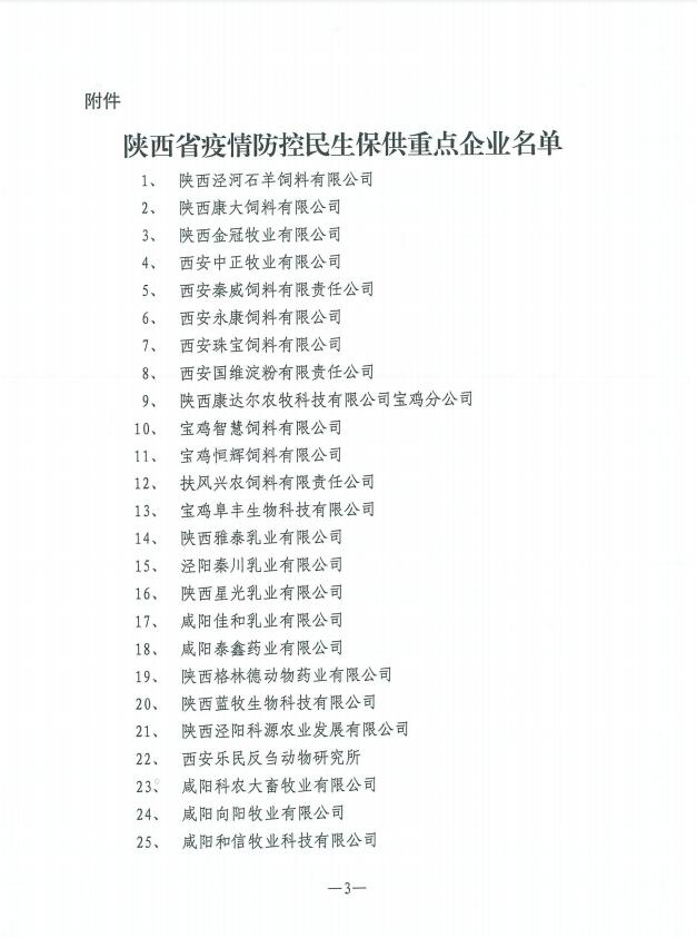 陕西省农业农村厅关于民生保供企业资质证明(第三批)